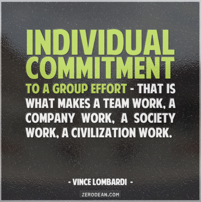 Individual commitment to a group effort—that is what makes a team work, a company work, a society work, a civilisation work.