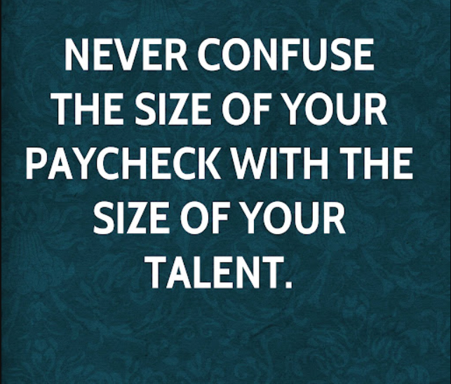 Never confuse the size of your paycheck with the size of your talent.